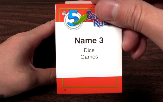 - Lưu ý: Tất cả các lá bài bắt đầu bằng "Kể tên 3..." theo các danh mục ngẫu nhiên. Người chơi nhỏ tuổi hơn hoặc ít kinh nghiệm hơn được phép chỉ đưa ra 2 câu trả lời. Người chơi lớn tuổi hoặc có kinh nghiệm hơn được yêu cầu đưa ra 3 câu trả lời. Trước khi bắt đầu chơi, hãy quyết định mỗi câu trả lời mà mỗi người chơi sẽ đưa ra.