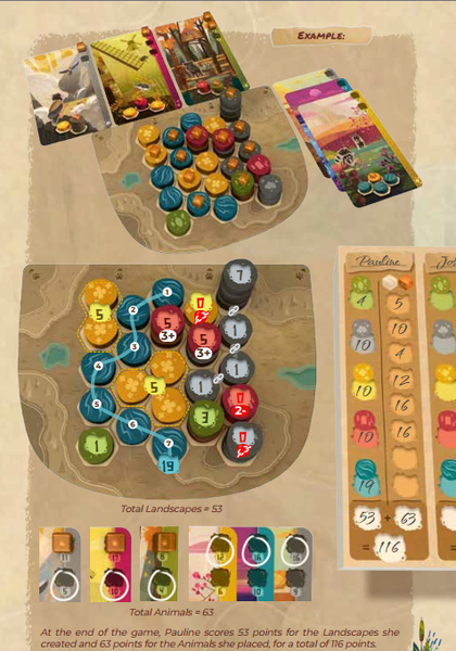 Vào cuối trò chơi, Pauline ghi được 53 điểm cho các Môi trường sống (Landscapes) cô ấy đã tạo ra và 63 điểm cho các Động vật (Animals) cô ấy đã đặt, tổng cộng là 116 điểm.