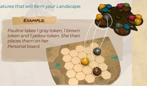 Với hành động này, bạn sẽ đặt các đặc điểm khác nhau tạo nên Cảnh Quan của mình. Bạn phải thực hiện hành động này chính xác một lần trong lượt của bạn.