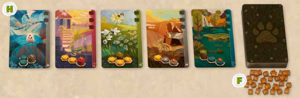 Vào cuối lượt của bạn, rút 3 token từ Túi Vải và lấp đầy Bảng Trung Tâm. Lấp đầy hàng Thẻ Động Vật nếu cần, sao cho có 5 thẻ ngửa lên.