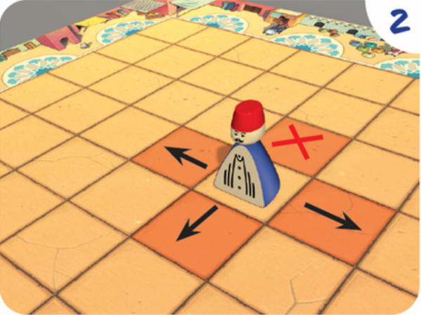 - Nếu Assam đi ra khỏi mép bàn cờ: Anh ta sẽ đi theo đường vòng cung của các họa tiết khảm (mosaics) ở rìa để quay trở lại bàn cờ. Các đường vòng này không được tính là 1 bước di chuyển.