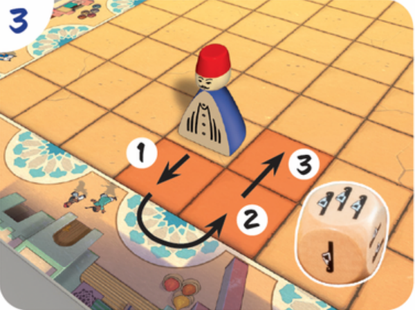 Sau khi chọn hướng, bạn tung xúc xắc. Số hình đôi dép trên xúc xắc tương ứng với số ô Assam phải đi. Assam đi theo đường thẳng.