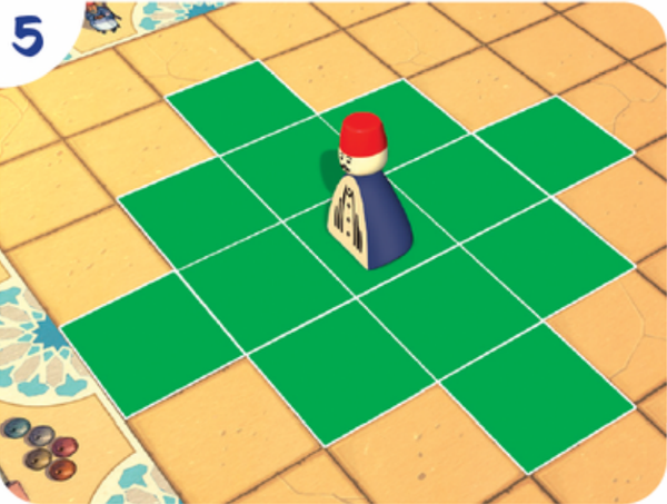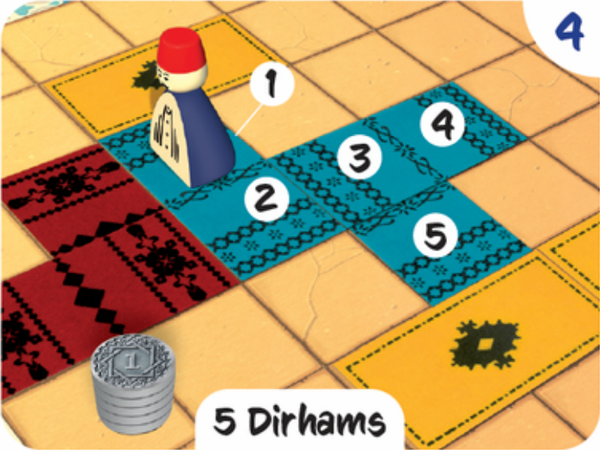 - Tính điểm: Mỗi nửa tấm thảm hiện thị trên bàn cờ = 1 điểm. Mỗi 1 Dirham = 1 điểm.