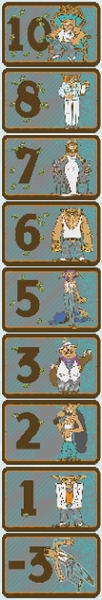 - Vào cuối mỗi ván, mỗi người chơi nhận điểm dương hoặc âm cho các lá bài Pumafioso của họ trong hệ thống phân cấp tương ứng với giá trị của bậc phân cấp.
