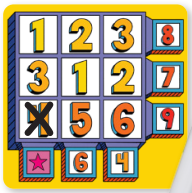 - Tìm và đánh dấu chéo chỉ một ô vuông trùng khớp với số vừa được lật.