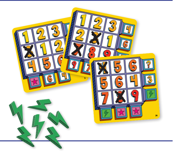 - Ví dụ: Nếu lá bài Số hiển thị số 5, bạn có thể sử dụng 1 Token Sét để đánh dấu ô vuông có số 4 hoặc 6 trên lá bài Lucky Box của mình.