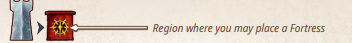 Biểu tượng Pháo đài: Các gạch Địa danh có thêm một khoản chi phí bằng Đồng xu tương ứng với số lượng quân Pháo đài (Fortress pawns) của bạn đã có trên bàn cờ trung tâm. Do đó, chi phí bổ sung cho miếng gạch đầu tiên của bạn là 0 Đồng xu.