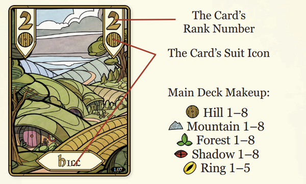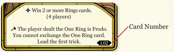 Các số nhỏ ở góc dưới bên phải của các lá bài hữu ích nếu bạn muốn sắp xếp lại trò chơi về thứ tự ban đầu để chơi lại các chương. Màu sắc cũng giúp bạn tìm tất cả các lá bài bạn cần để chơi chế độ "Con Đường Luôn Tiếp Tục..." (The Road Goes Ever On...)