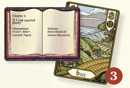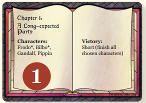 Lấy lá bài Chương 1 "Một Bữa Tiệc Được Mong Đợi Từ Lâu" (A Long-expected Party) và đặt nó cùng với các lá bài nhân vật được liệt kê ngửa lên ở giữa bàn.
