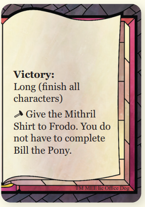 Frodo chỉ cần được hoàn thành một lần. Bill the Pony chuyền 1 lá bài cho Frodo và Sam cùng lúc, không phải từng lá một.