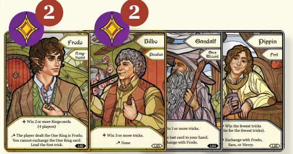 Người chơi chia 1 chiếc Nhẫn phải lấy Frodo (người sẽ được sử dụng trong mỗi vòng) và luôn dẫn mánh đầu tiên. (Bỏ qua các hành động thiết lập mánh đầu tiên không phải của Frodo).