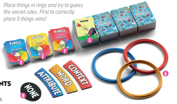 Mục tiêu: Đặt các "things" (vật phẩm) vào các vòng tròn và cố gắng đoán các luật bí mật. Người đầu tiên đặt đúng 5 vật phẩm trong tay mình sẽ thắng cuộc