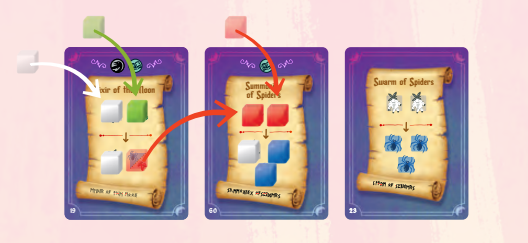 Chọn một loại nguyên liệu (ví dụ: Nhện). Trong vòng này, người chơi có thể lấy nguyên liệu loại đó từ nguồn cung cấp như thể chúng đang ở trên khu vực