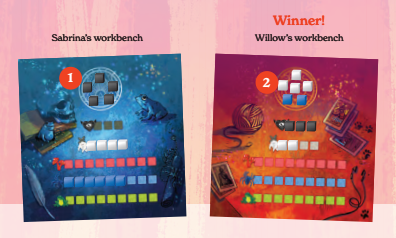 Người chơi đầu tiên có từ 5 nguyên liệu trở lên trong Vòng Tròn Phù Thủy của họ sẽ thắng trò chơi!