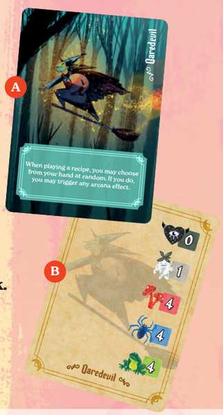 Phù Thủy Tổng Hợp (Witch of All Trades) Nếu người chơi có ít nhất 1 mỗi loại Trái Tim Bóng Tối, Mandrakes, Cây Nấm, Con Nhện và Con Cóc trong vạc của họ sau khi sản xuất nguyên liệu nhưng trước khi chuyển vạc của họ, họ có thể di chuyển 1 nguyên liệu bất kỳ loại nào từ vạc của họ sang Vòng Tròn Phù Thủy của họ.