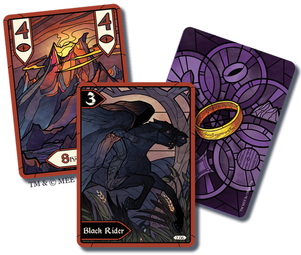 - Một bộ bài gồm bốn màu (tượng trưng cho bốn hướng hành trình), mỗi màu có giá trị từ 1 đến 9, cùng một vài lá đặc biệt như “The Ring”, “Sauron” hay “Gandalf”.